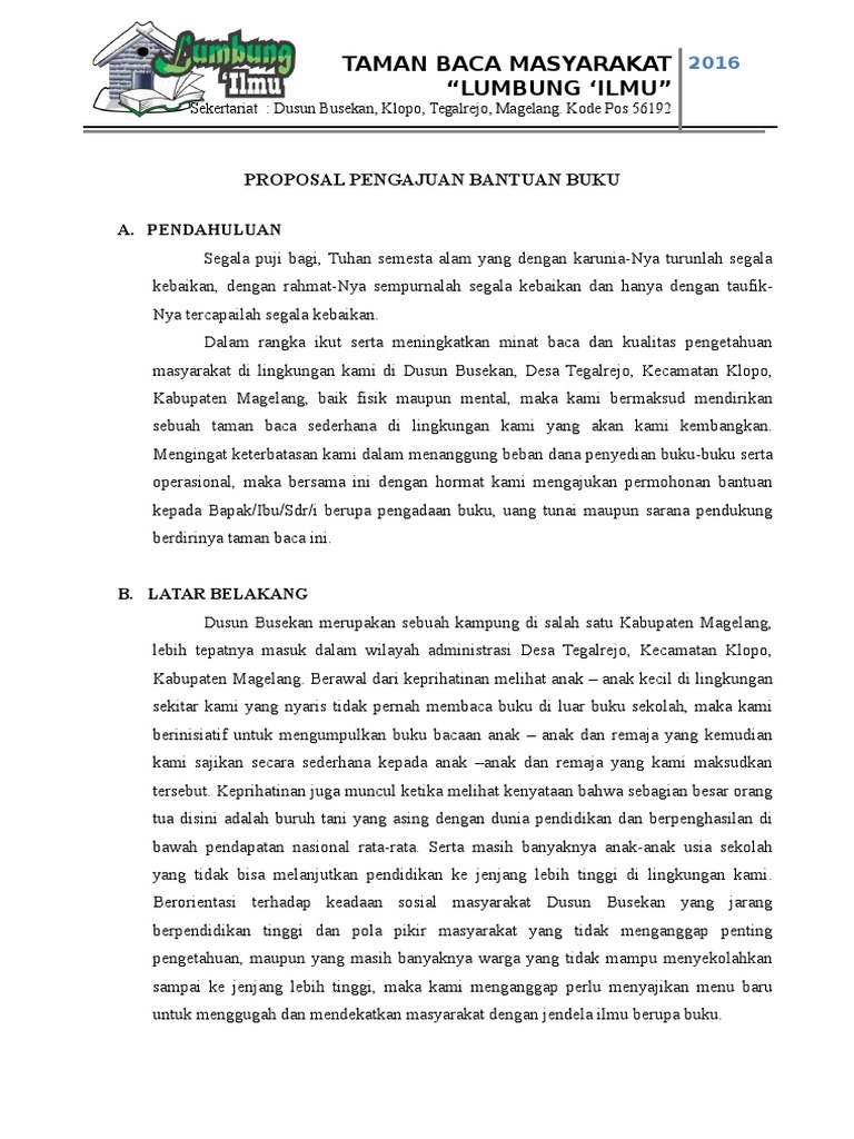 DOC) Contoh Proposal Permohonan Bantuan Buku | Risna Herjayanti - Academia.edu
