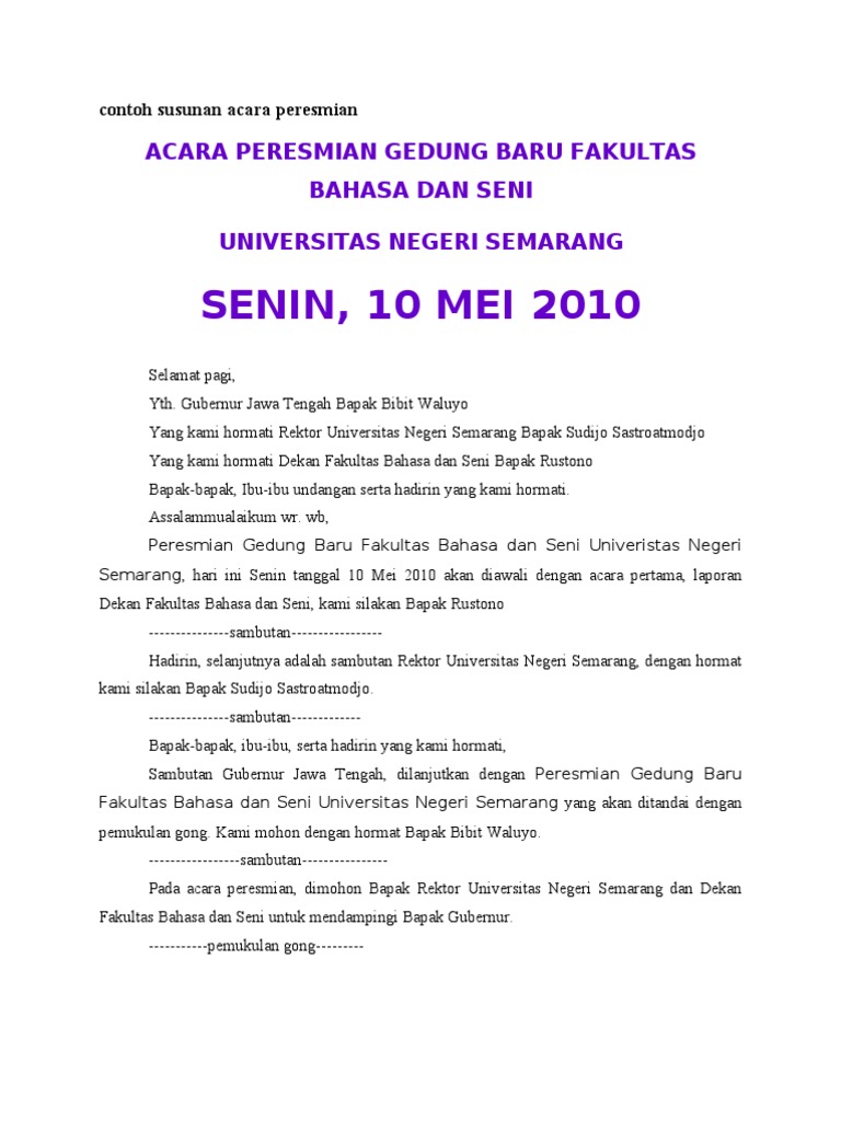 Contoh Susunan Acara Peresmian - [PDF Document]