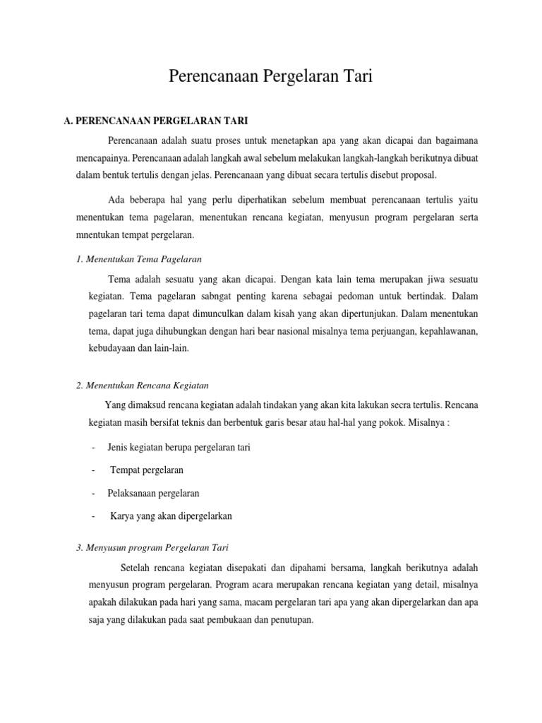 Perencanaan Pergelaran Tari