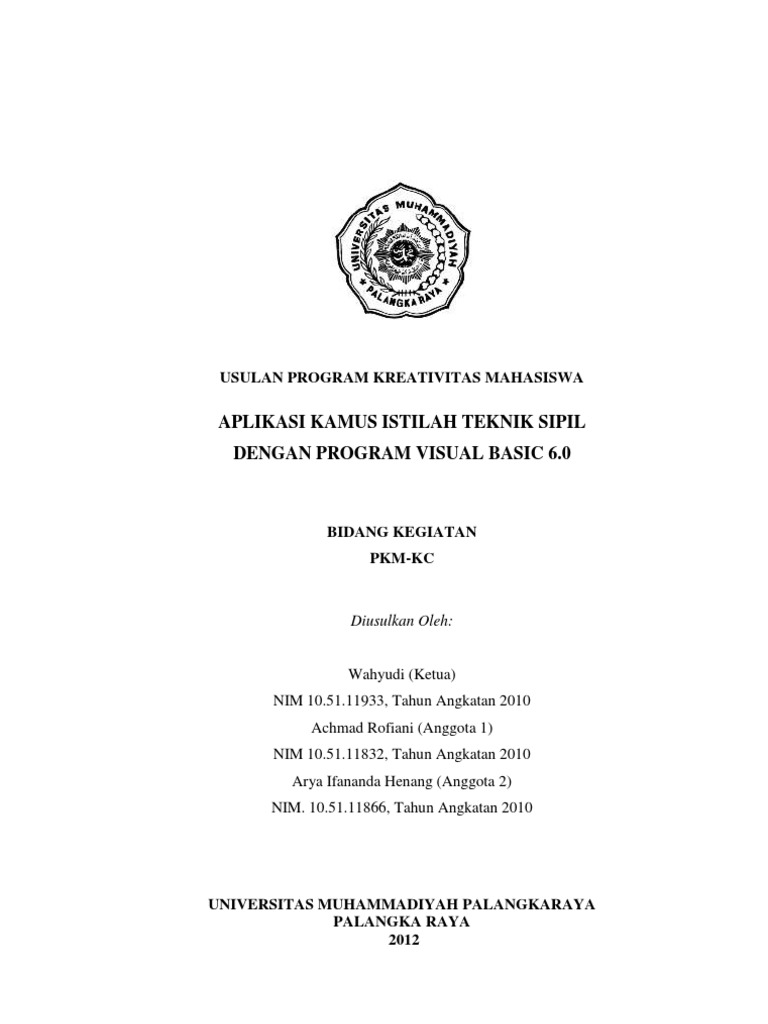 Usul Proposal PKM-KC - Aplikasi Kamus Istilah Teknik Sipil Dengan Program Visual Basic 6.0