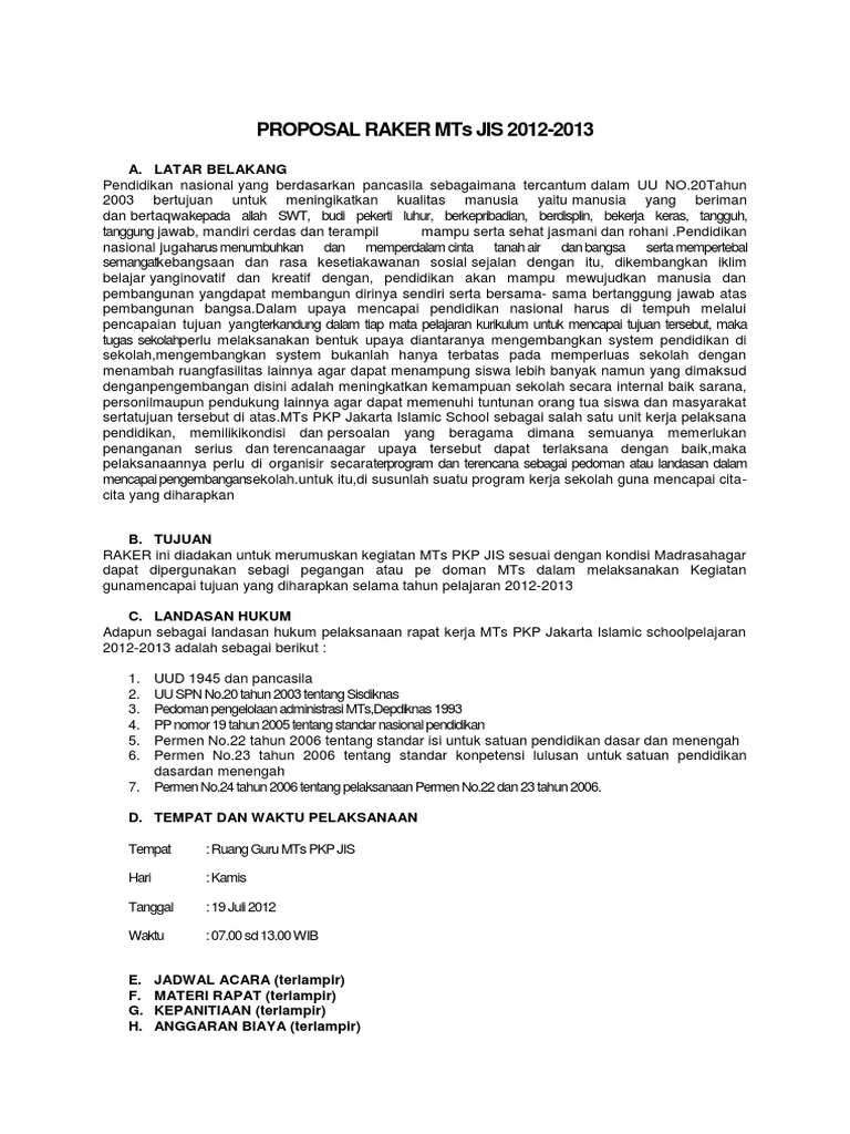 Contoh Proposal Rapat Kerja Sekolah - Mosaicone