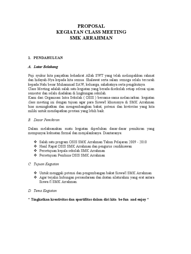 Contoh Proposal Class Meeting - Guru Ilmu Sosial