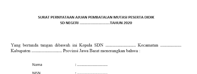 Contoh Format Pembatalan Mutasi Peserta Didik Sekolah Dasar | Administrasi Dasar
