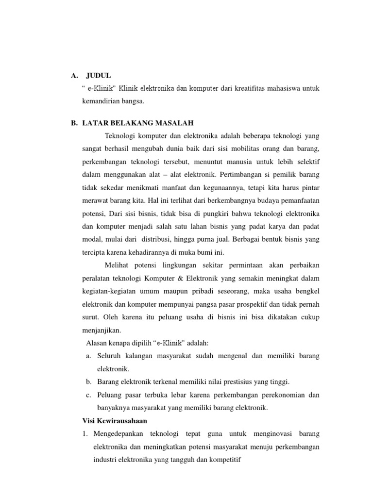 Contoh Referensi Proposal Kewirausahaan Bidang Elektronika - Asdar Id