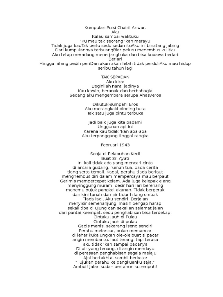 PDF) Kumpulan Puisi-puisi Chairil Anwar AKU | Riki Ersanda - Academia.edu