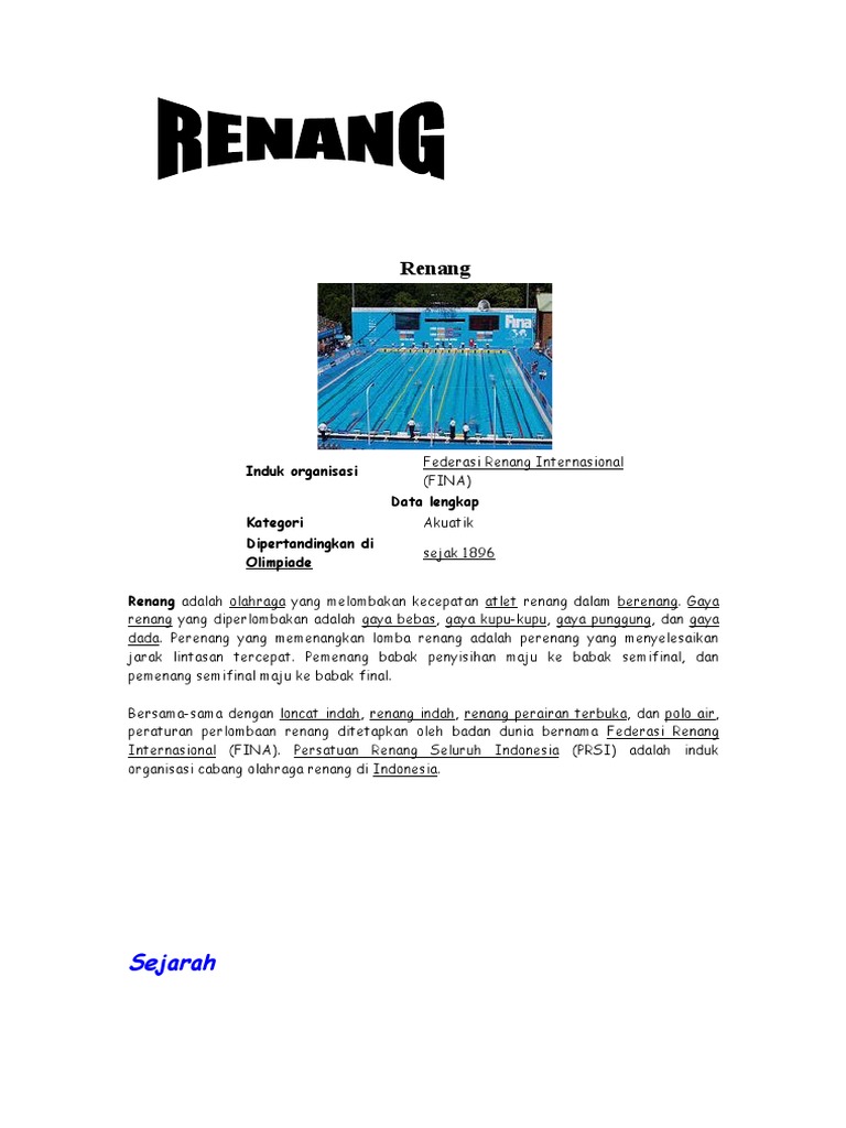 Contoh Kliping Tentang Pengertian Renang ~ Makalah anak SD