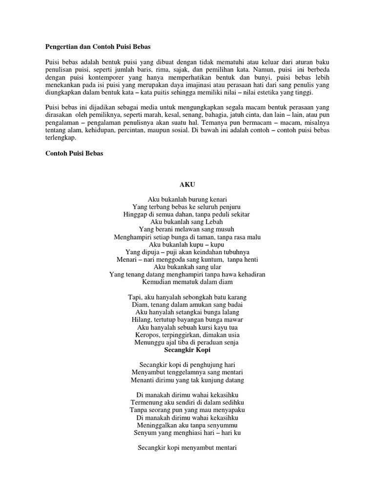 Pengertian Dan Contoh Puisi Bebas