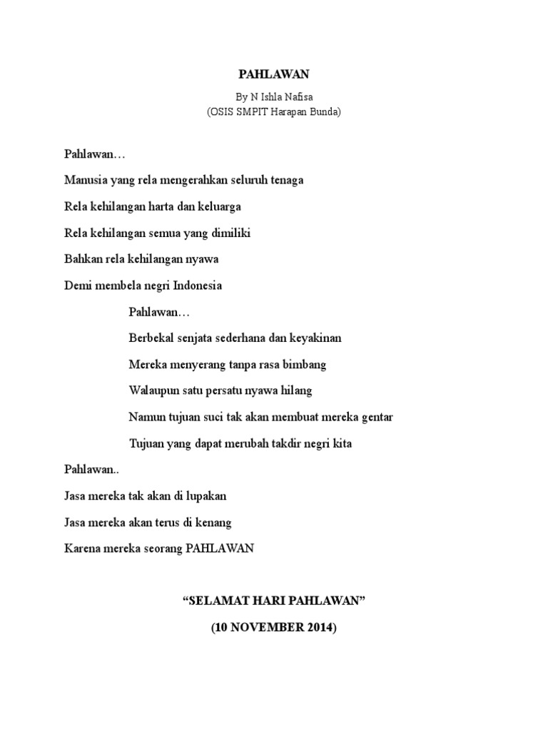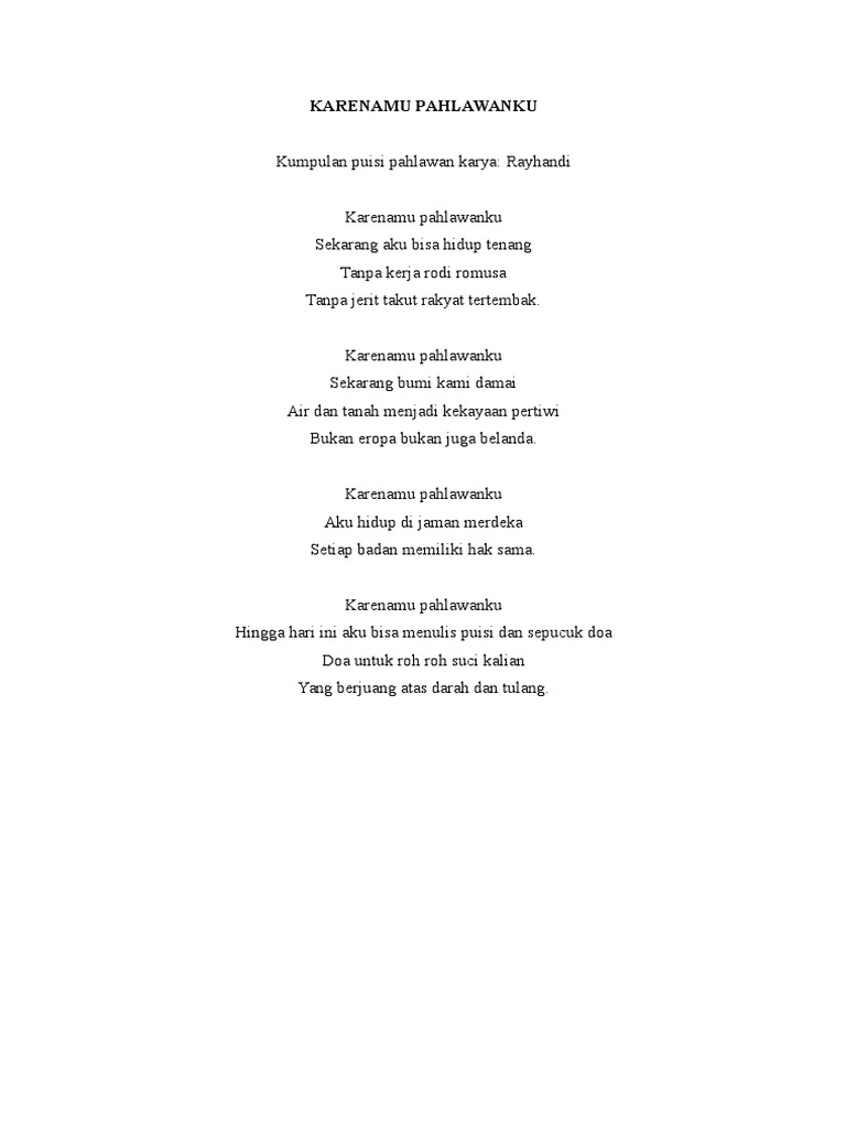 Pahlawanku Puisi Pahlawan Singkat | Kumpulan soal Pelajaran 3