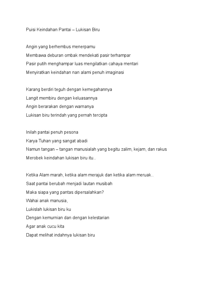 Contoh puisi pantai 5 Bait? - Brainly.co.id