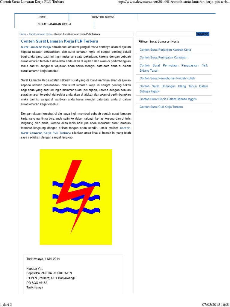 Contoh Surat Lamaran Kerja PLN Terbaru.pdf - [PDF Document]