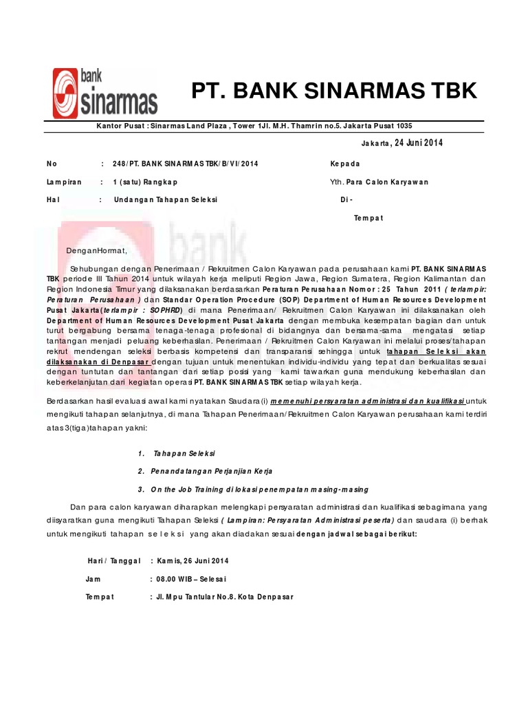 Contoh Surat Lamaran Di Bank Sinarmas - Kumpulan Contoh Gambar