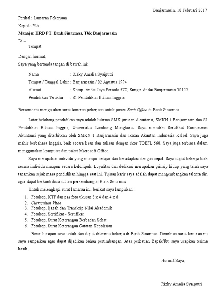 28+ Contoh Surat Lamaran Bank Sinarmas - Kumpulan Contoh Gambar