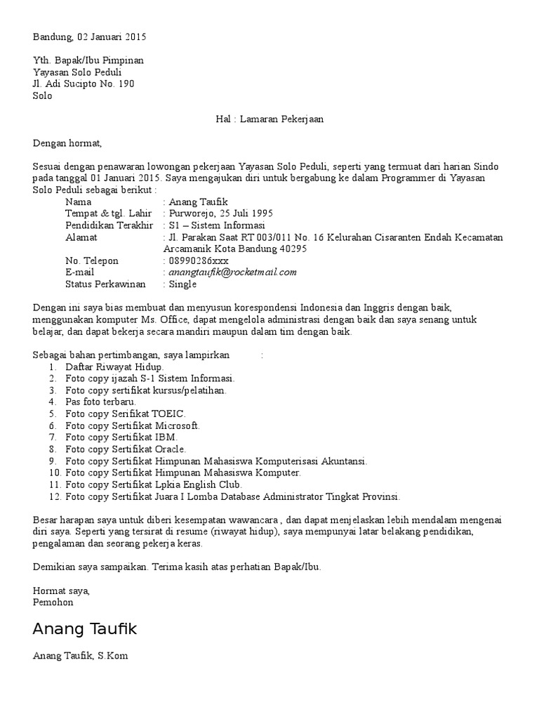 DOC) SURAT LAMARAN KERJA | si dukun - Academia.edu