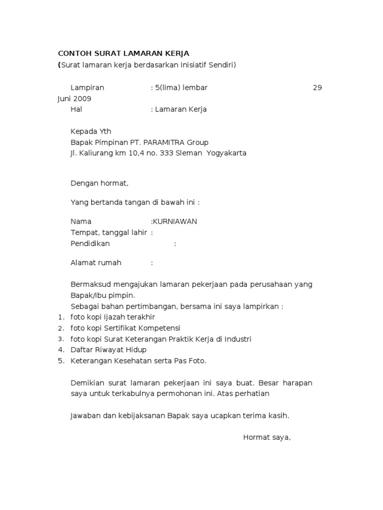 Contoh Surat Lamaran Kerja Inisiatif Sendiri - Gawe CV