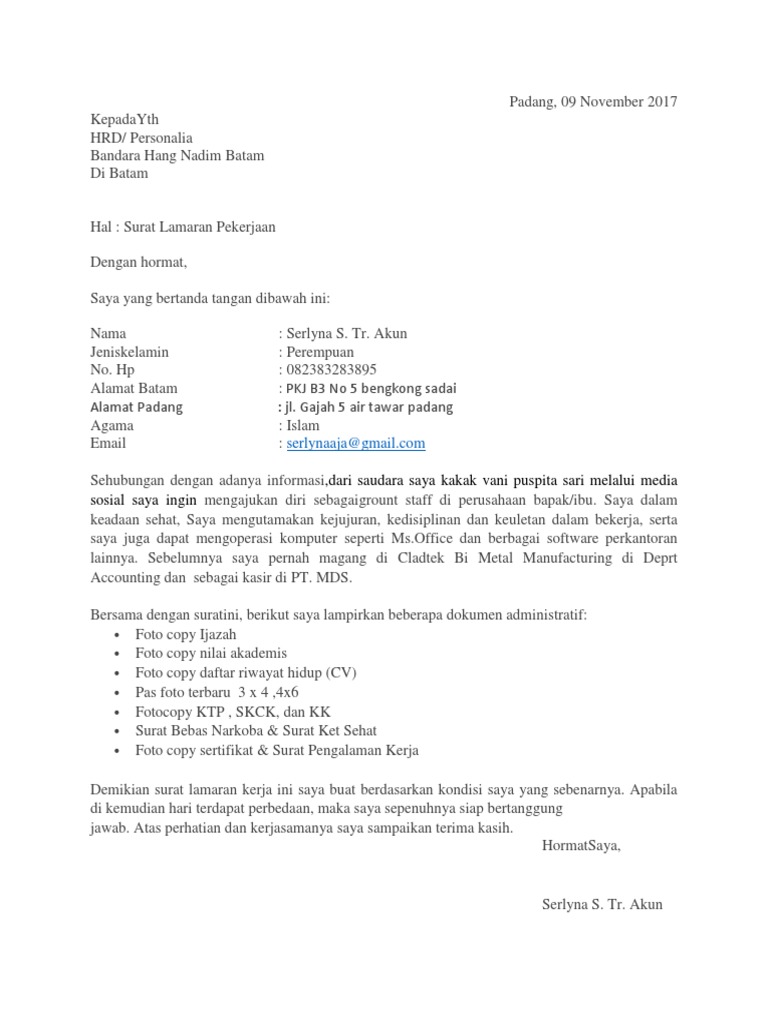 Contoh Surat Lamaran Kerja Di Bandara Angkasa Pura - Bagikan Contoh