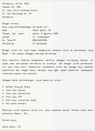 Contoh Surat Lamaran Kerja Umum yang Baik Benar dan Menarik [Terbaru] - Satria Baja Hitam