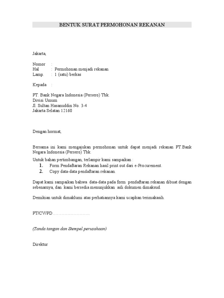 Download Contoh Surat an Rekanan