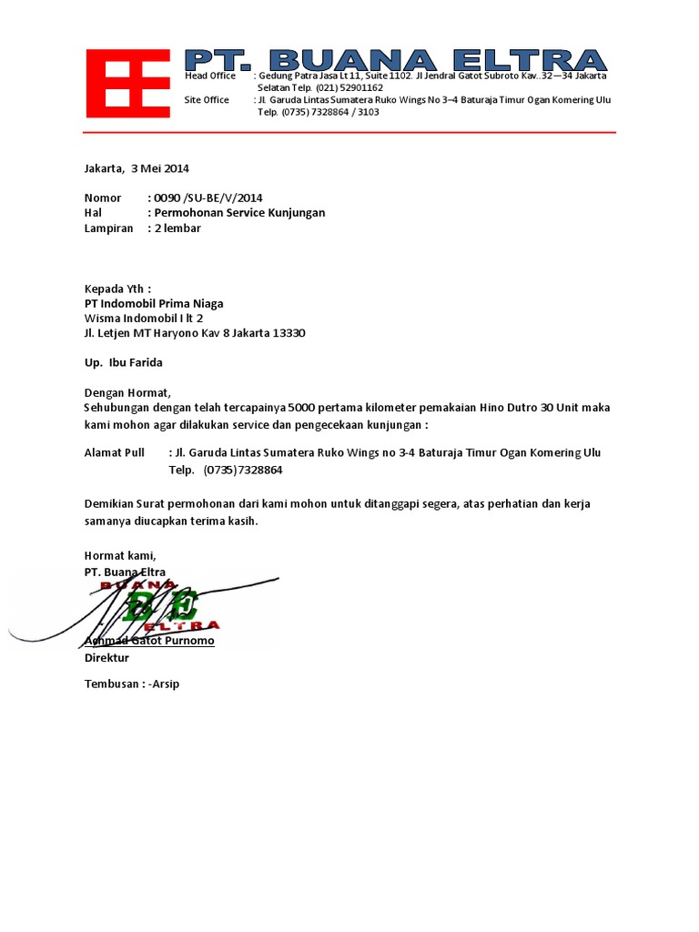 Surat Permohonan Service Kunjungan
