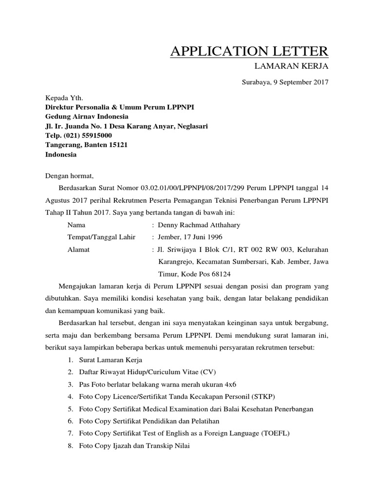 Contoh Surat Lamaran Kerja Ke Penerbangan (Airlines) | Surat, Penerbangan, Pendidikan