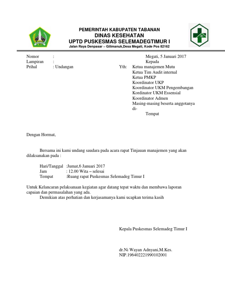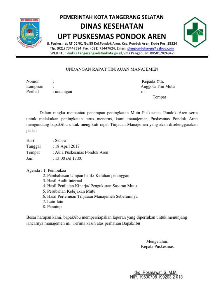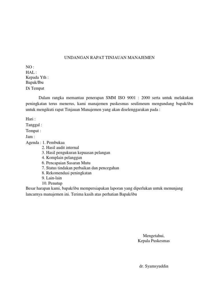 8500 Koleksi Contoh Undangan Rapat Tinjauan Manajemen Puskesmas Terbaik - Contoh Undangan
