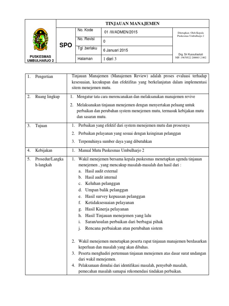 STANDAR OPERASIONAL PROSEDUR KAJI ULANG MANAJEMEN - PDF Download Gratis