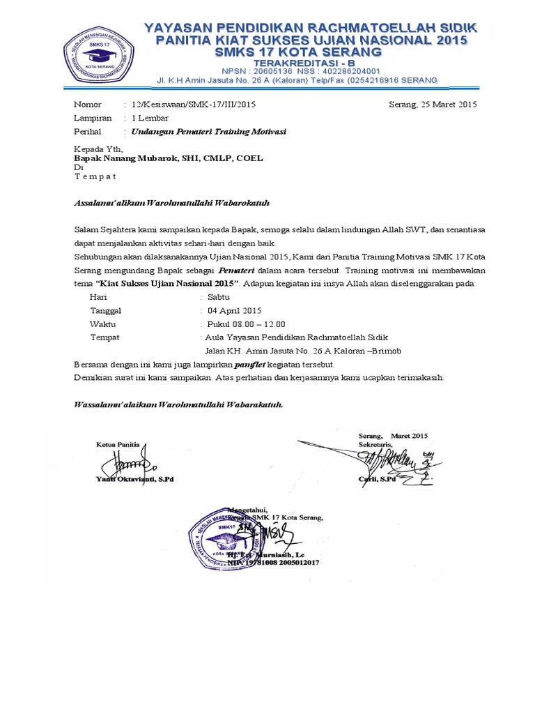 Surat Undangan Motivator