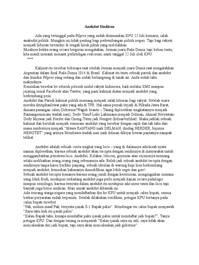 Contoh Teks Anekdot Dalam Bahasa Jawa - Berbagai Teks Penting