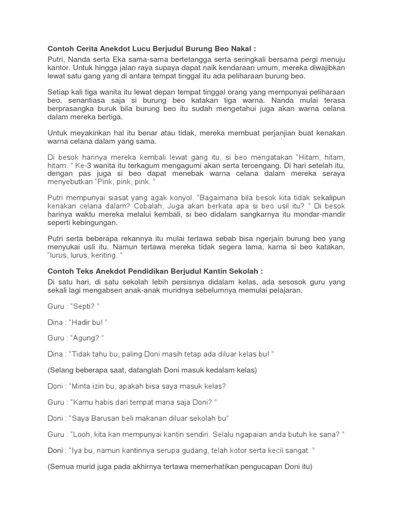 PDF) 77 Contoh Teks Anekdot / Singkat / Lucu | Quality Chanel - Academia.edu