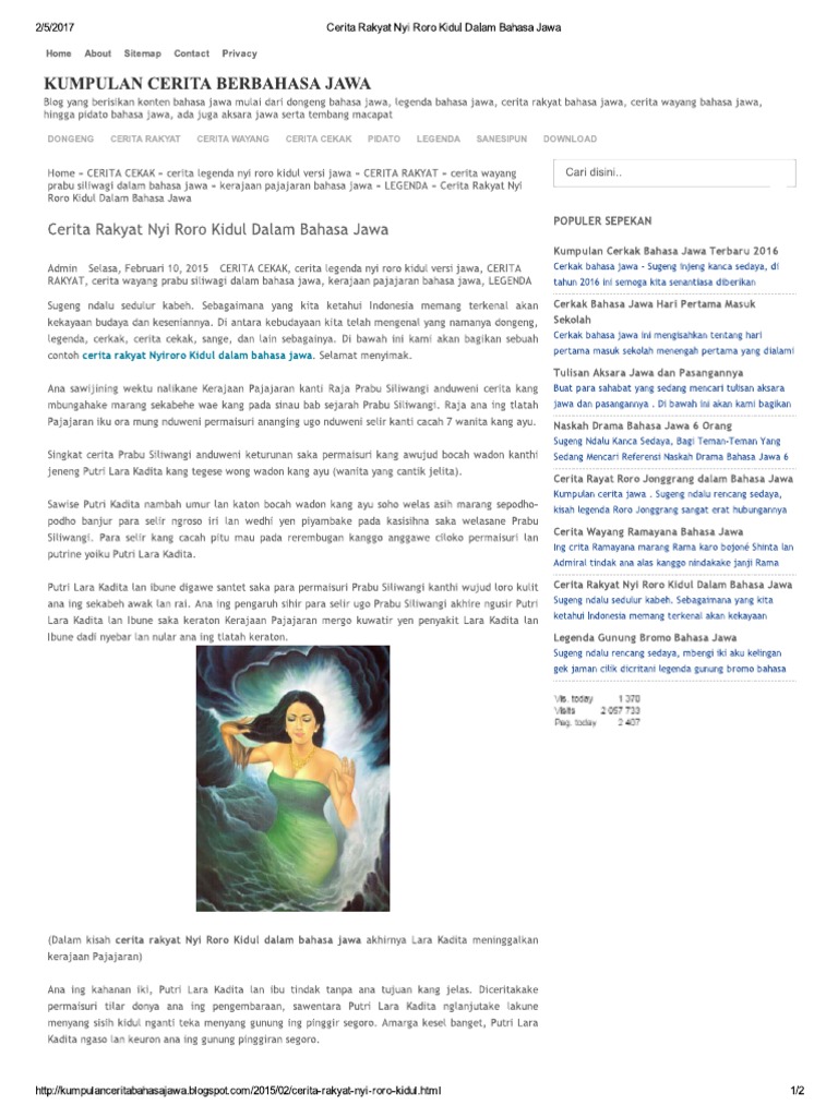 Cerita Rakyat Nyi Roro Kidul Dalam Bahasa Jawa