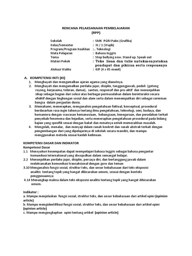 DOC) RPPKelas X Bahasa IndonesiaOK | larasati suroso - Academia.edu