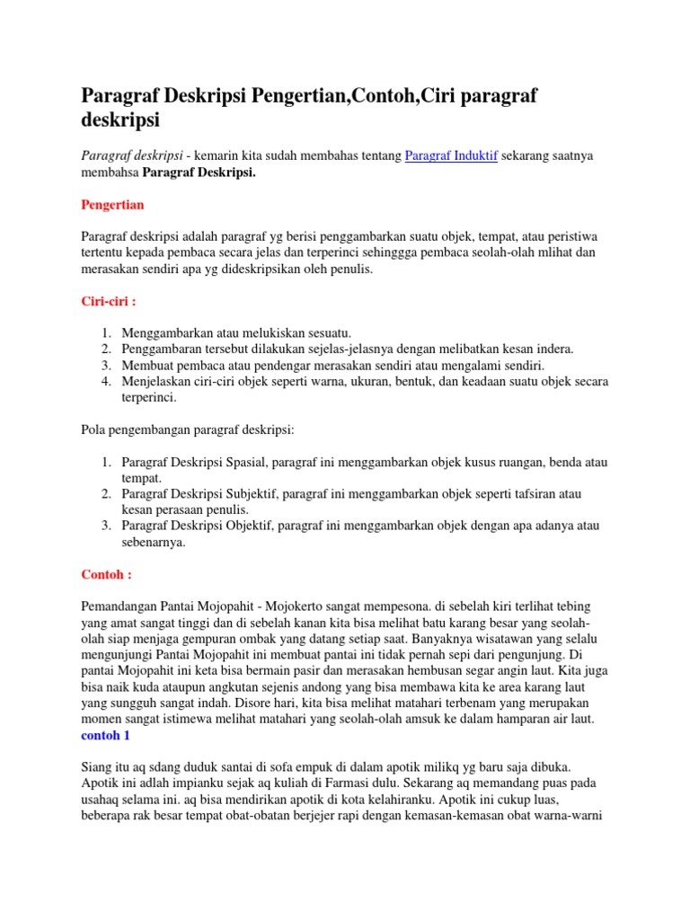 Paragraf Deskripsi Beserta Contohnya Dalam Bahasa Indonesia
