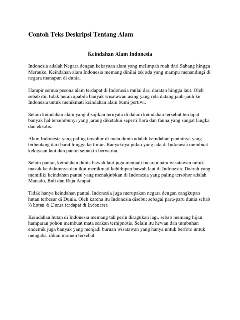 Contoh Teks Deskripsi Tentang Keindahan Alam Indonesia - Dapatkan Contoh