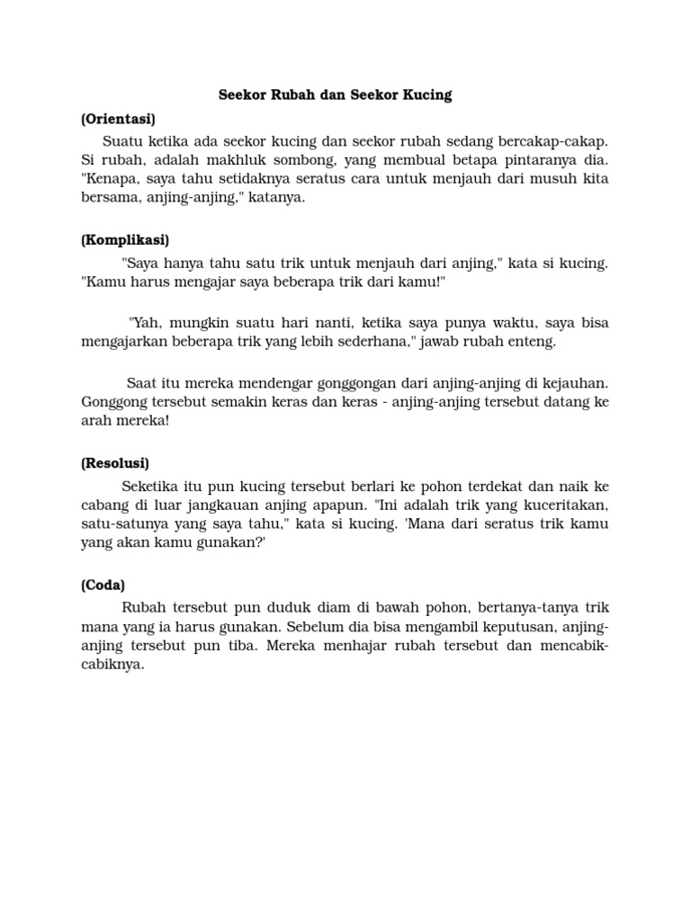 Ciri Ciri Teks Fabel Kucing Dan Beruang - Berbagai Teks Penting