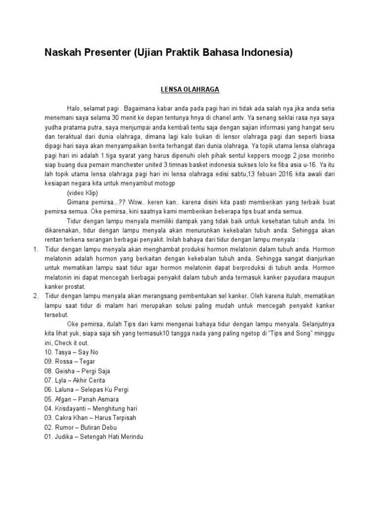 Contoh Naskah Pembawa Berita Dan Reporter - Berbagai Naskah