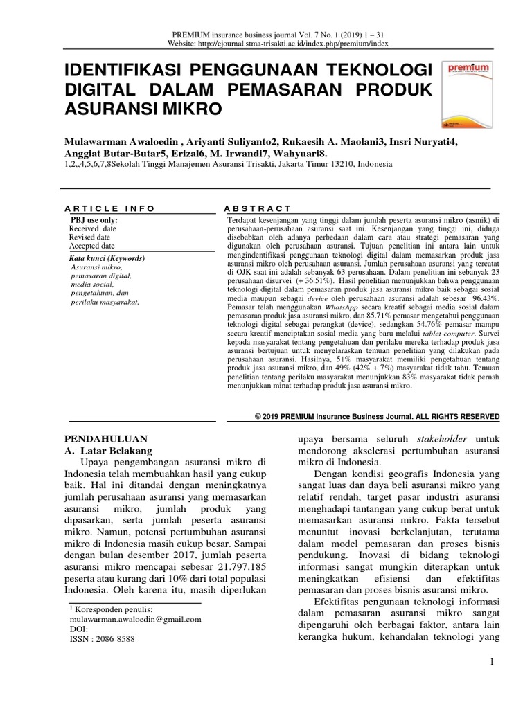 Identifikasi Penggunaan Teknologi Digital Dalam Pemasaran Produk Asuransi Mikro