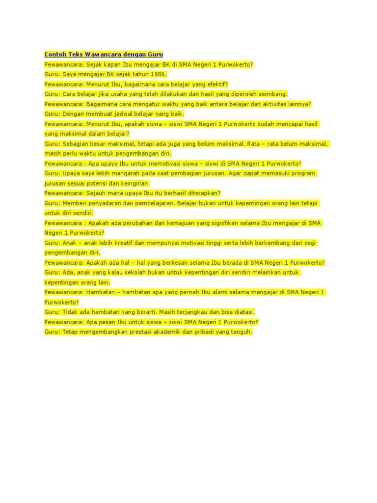 Contoh Teks Wawancara Kelas 5 Sd - Berbagai Teks Penting