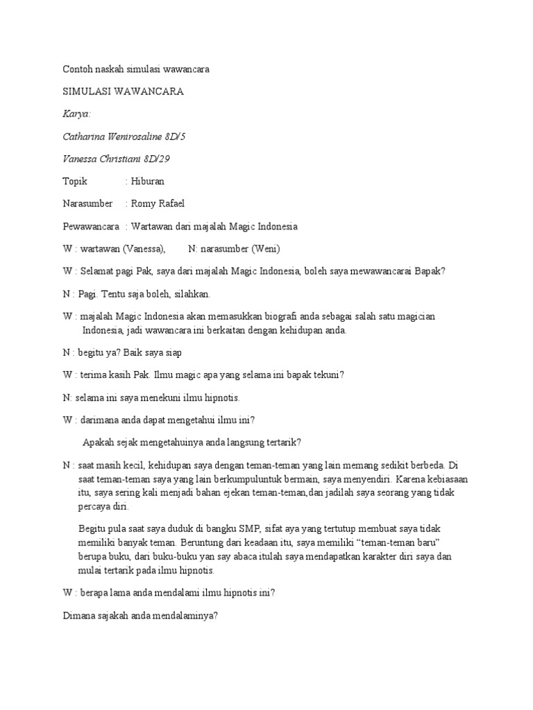 DOC) contoh teks wawancara | Viona Naomi Istiqomah - Academia.edu