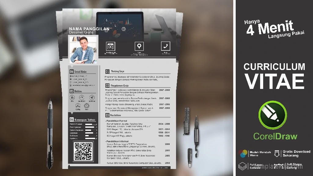 Download Template Curriculum Vitae (Cv) Dapat Di Edit Coreldraw | CODE ILMU