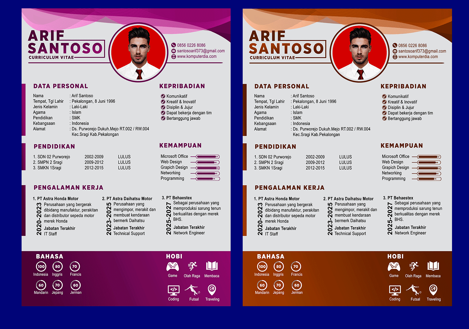 25 Contoh CV Lamaran Kerja / Curriculum Vitae / Daftar Riwayat Hidup Terbaik - Komputerdia | Berbagi Tutorial
