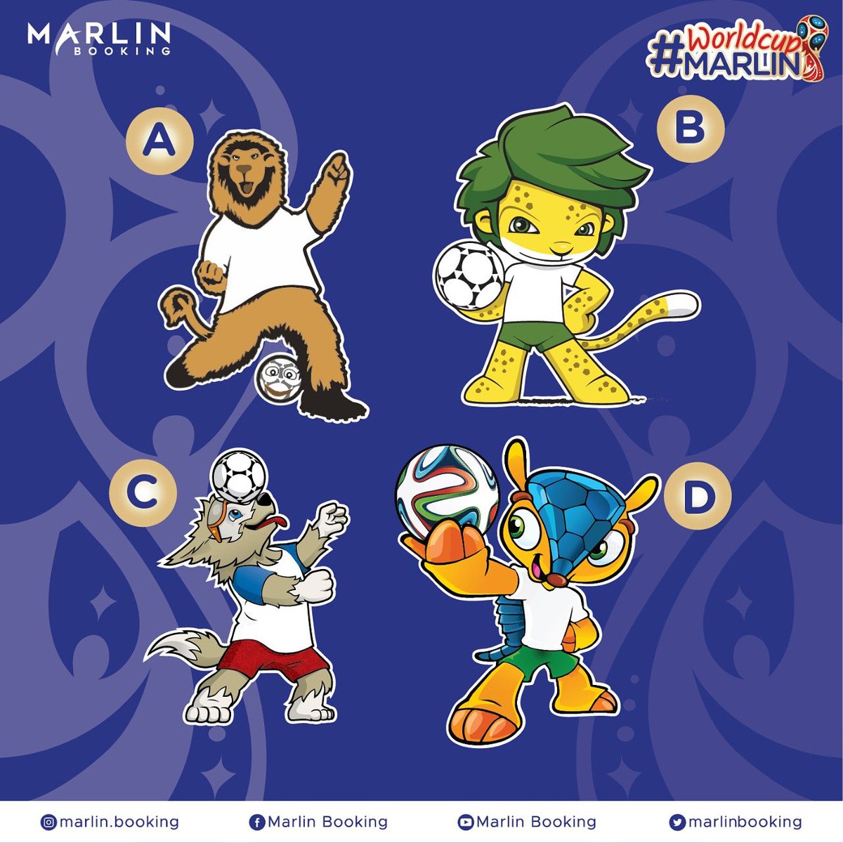 Marlin Booking on Twitter: “QUIZ TIME! Coba tebak dari ke empat maskot di atas, mana yang maskot dari Piala Dunia 2018? Dapetin pulsa 50K, syarat: 1. Follow sosmed Marlin Booking dan download