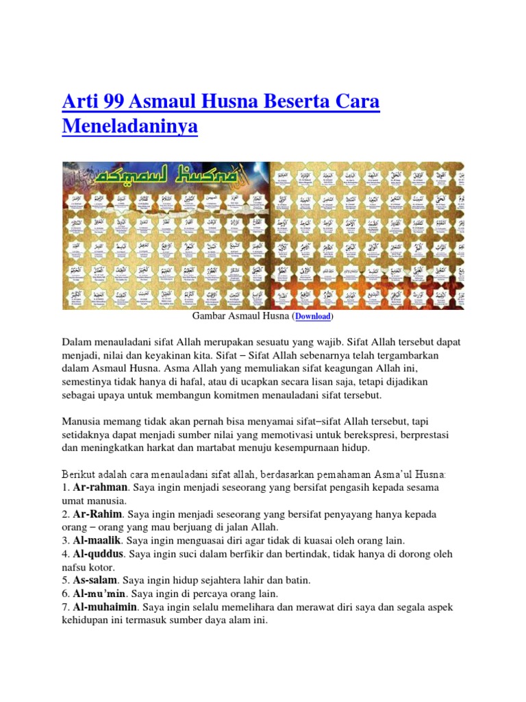 Download Asmaul Husna Dan Artinya Pdf To Excelgolkes – My Slim Fix