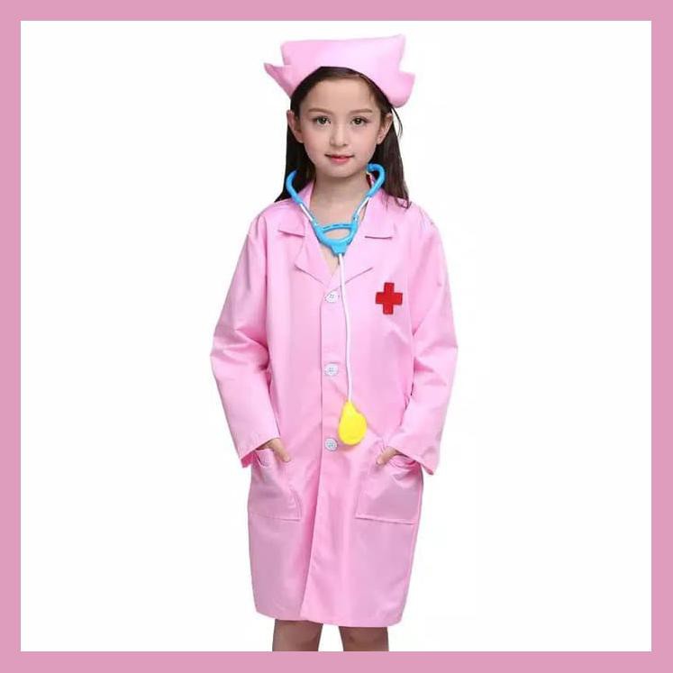 BAJU DOKTER KECIL PINK SET STESTOKOP SESUAI GAMBAR - 5-6 TAHUN, MERAH MUDA | Shopee Indonesia