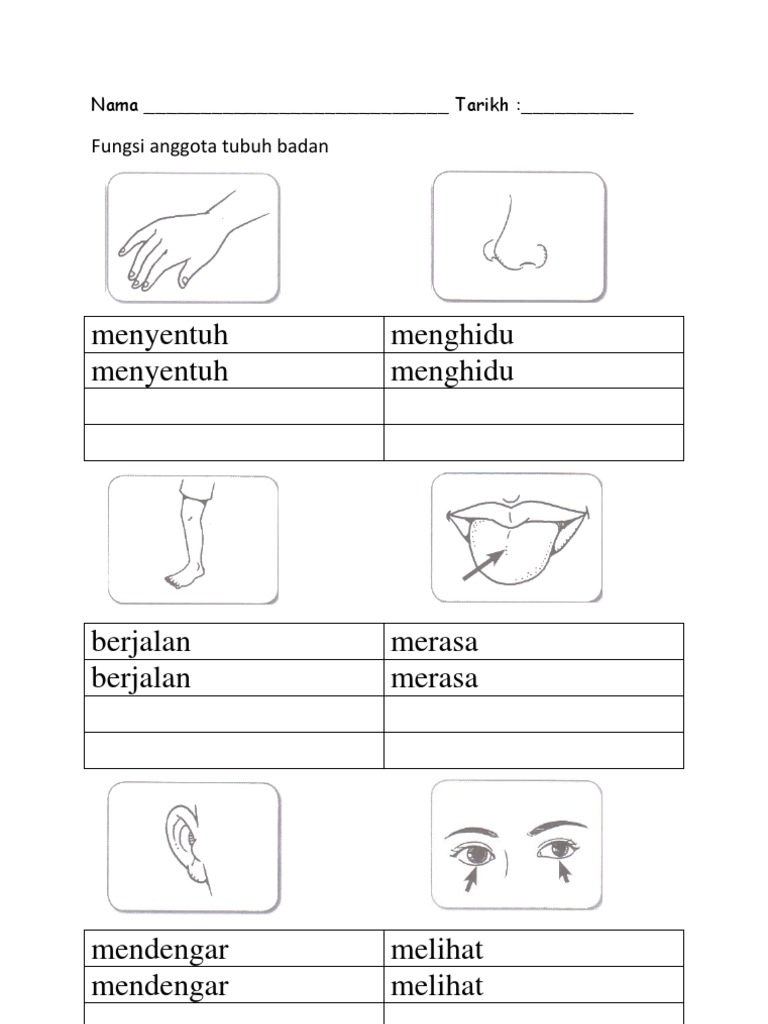 Lembaran kerja anggota badan… - Bahan Prasekolah | Facebook