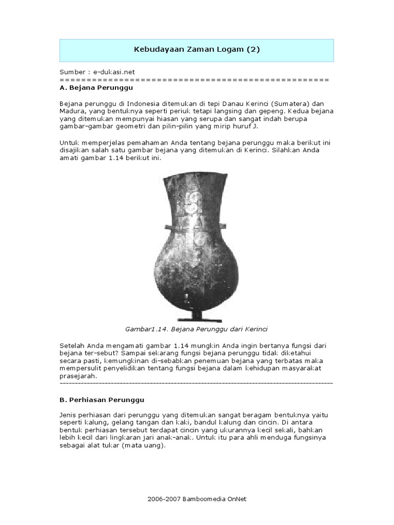 Pengertian Bejana Perunggu Sejarah Peninggalan Masa Perundagian