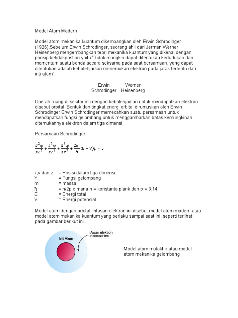 Teori Atom Modern. Dikembangkan oleh Erwin Schrodinger (1926). Sebelumnya Werner Heisenberg telah mengembangkan teori mekanik… | Mekanika kuantum, Kimia, Heisenberg