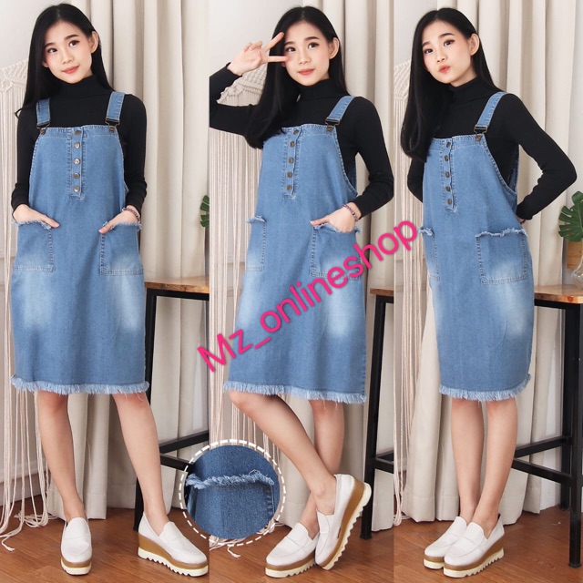 Mz_onlineshop LIAT-Dress jeans overal wanita / Baju kodok MIDI WANITA OVERALL 2 KANTONG Good Quality | Shopee Indonesia