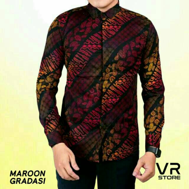 BAJU KEMEJA BATIK PRIA GRADASI LENGAN PANJANG SLIMFIT | Shopee Indonesia