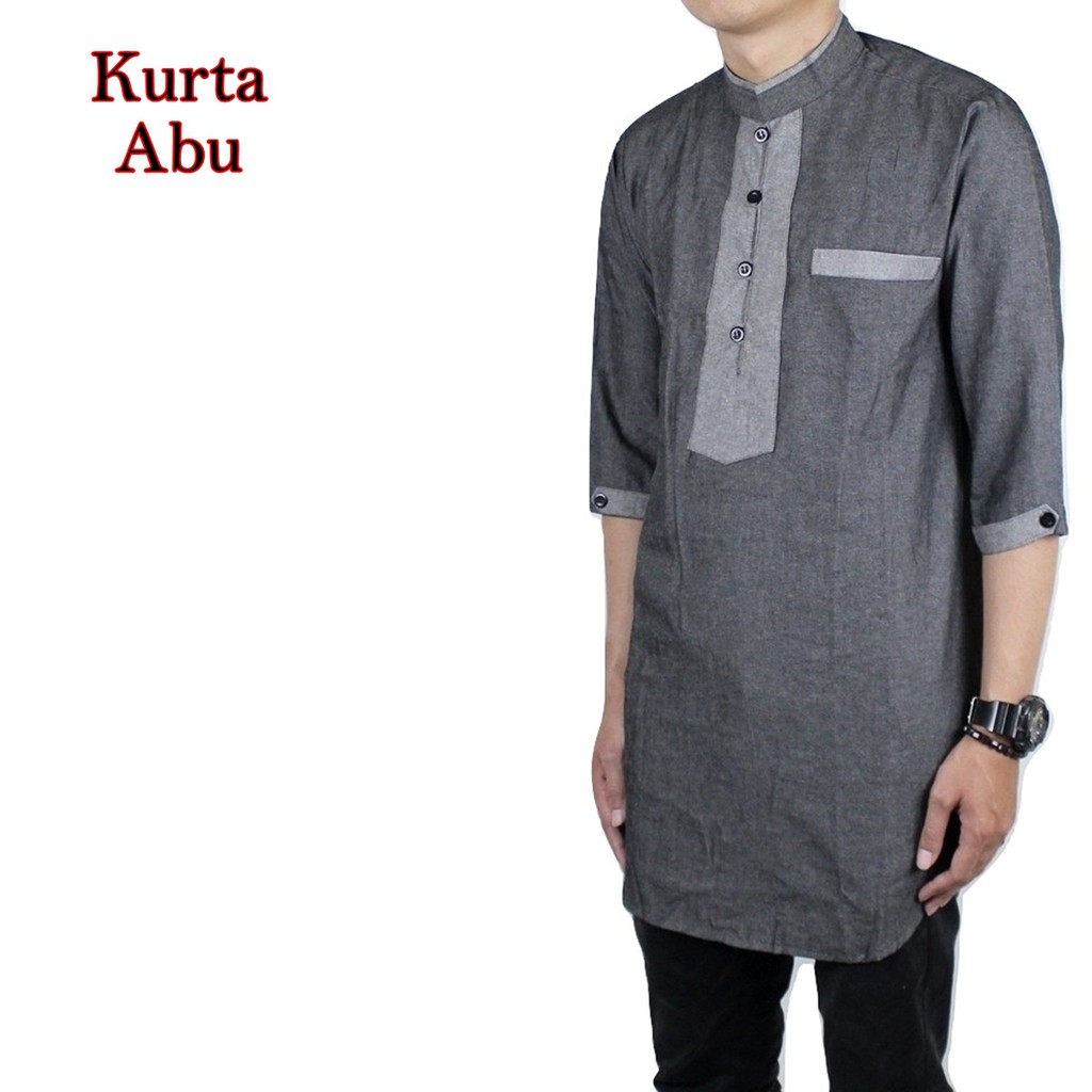 Baju Koko Kurta Gamis 3/4 Grey - Baju Muslim Pakistan