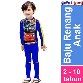 Baju Renang Anak Laki Cowok Swimwear Diving Cars Mcqueen Biru Lengan Celana Panjang | Shopee Indonesia