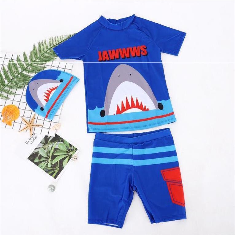 Set 3Pcs Baju Renang Anak Laki-laki Model Two-Pieces dengan Bahan Katun dan Gambar Motif | Shopee Indonesia